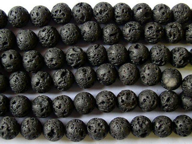 In this case a very large one with extra-strength reinforcement. The beads she handed me were the heaviest 'suckers' I've EVER worked with. They were some sort of recreation of a lava bead (below left), but could not be real as the paint on the beads kept flaking off in my hands as I re-strung them. The color looked like poop ... somewhere north of brown, somewhere south of green. Why on God's green earth someone thought a multi-strand necklace with these beads was a good idea is beyond me.