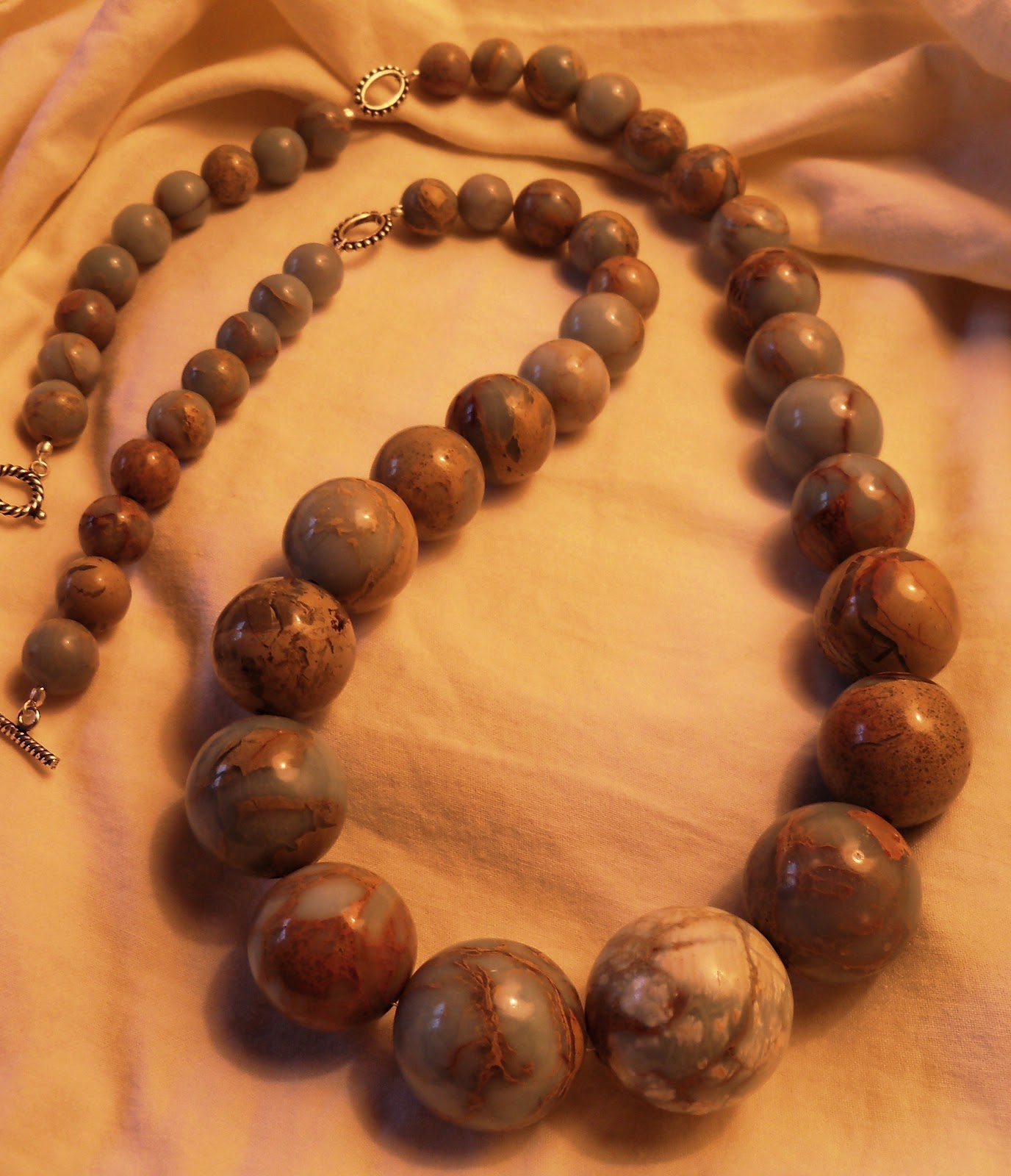 So perhaps you're asking what happened to the beautiful African Opal I was talking about? Well I did feel bad. She did really like that necklace. I decided to surprise her by stringing a new necklace, but this time I was in charge of the beads.