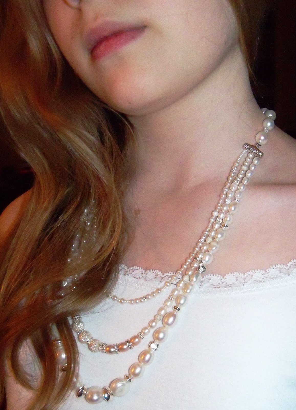 Last Spring she was planning her wedding and she realized that I might indeed be able to make a custom necklace to fit the look she is going for. I did say she can pull off anything .... and one would need this attribute for this particular piece. So her description of what she wanted was a 3 tier necklace that hangs mid-length with varying sizes of pearls and plenty of bling. Now when someone asks for bling you need to get specific with them because not all bling is created equally. Are we talking Kardashian style? or god help me .... Lady Gaga? or more subtle Cartier classic? Her reply was "surprise me, I trust you" ... really? We just met, at least at this point in our friendship.