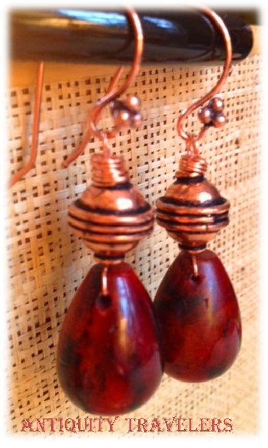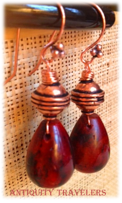 I love these red beads she included, which she tells me are dyed howlite. They are fantastic! I paired them up with copper components and beads from Melinda. The colors blend beautifully, and they have a nice weight to them.